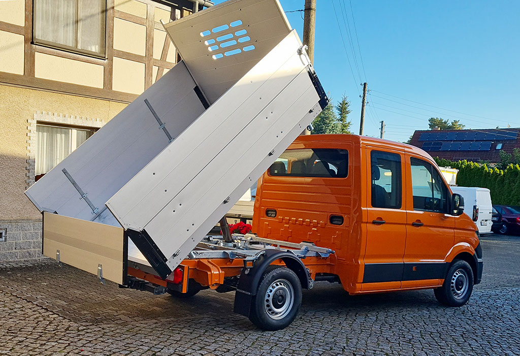 Je nach Kundenwunsch kann bei Kippern jede Kipprichtung in beliebiger Kombination realisiert werden, die Kippmulden können aus Stahl oder Aluminium gefertigt werden. Auch eine so genannte Mischbauweise ist möglich, bei der der Hilfsrahmen aus Stahl, die Bordwände aus Aluminium und der Boden aus Siebdruckplatten oder Stahl gefertigt wird. Die tragenden Teile dieses Aufbaus sind feuerverzinkt und dadurch wartungsfrei und langlebig. Korrosion ist bei vorgeschriebenem Gebrauch an den tragenden Elementen praktisch nicht möglich. Die Kippmulde wird nach gründlicher Untergrundvorbehandlung nach Kundenwunsch lackiert.